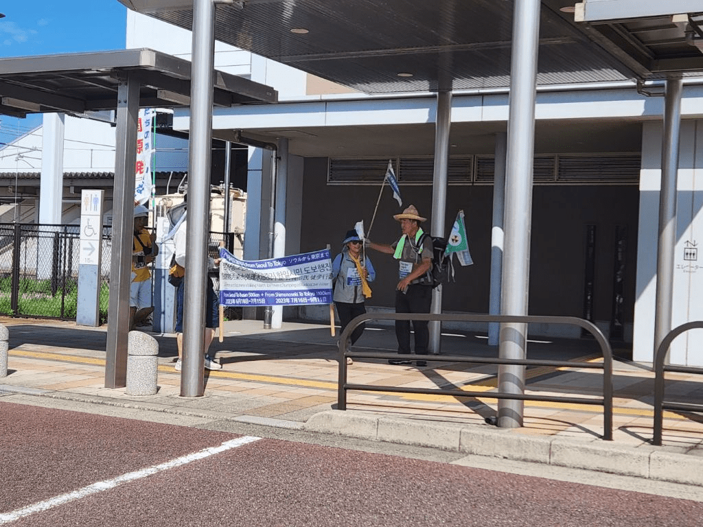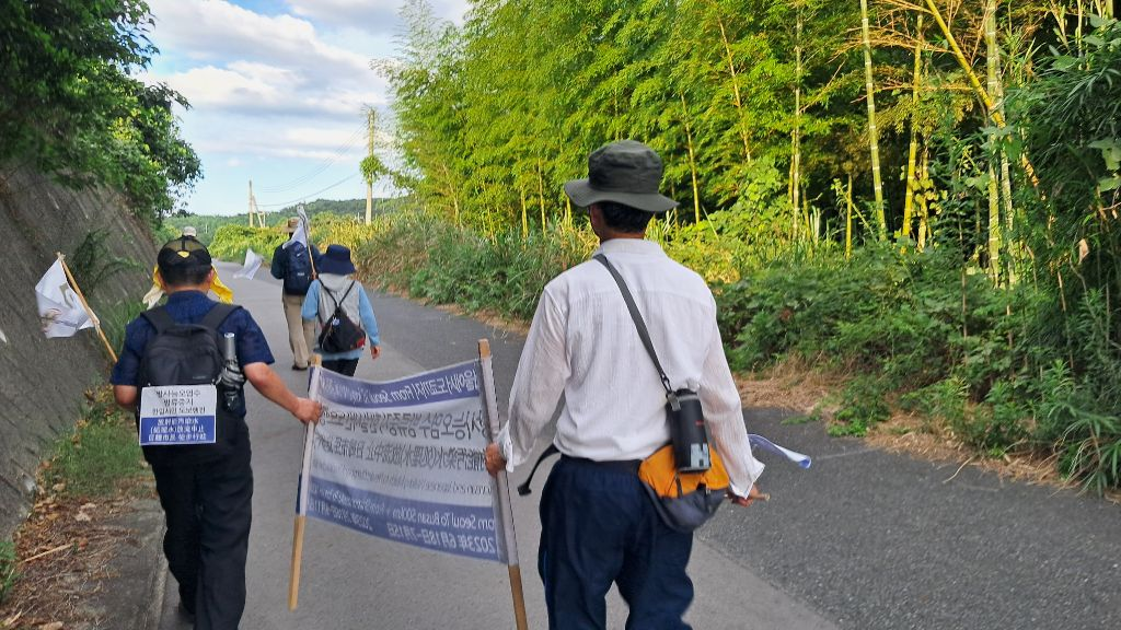 “He is the guy who saw us at the Kozuki Station market, asked questions, and expressed empathy. After we were marching for a while, this person came chasing after us on his bicycle and handed us about 20 ice cakes. he said “I used to be a yakuza, but there are not only bad yakuza like thugs in South Korea, but there are kind yakuza like myself.” While listening to the story, I thought that our vicious gangsters like government is more of a problem in South Korea right now than the yakuza and thugs. Anyway, it was an ice cake that cools the steamy heat.”