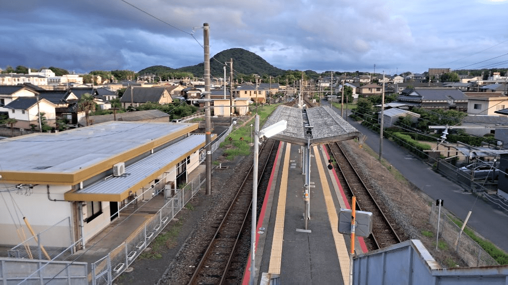 32. The station building and city area seen from the top of the stairs. Take the train to the lodgings in Shin-Yamaguchi for about 20 minutes, and will come back here tomorrow morning to resume the walking march.