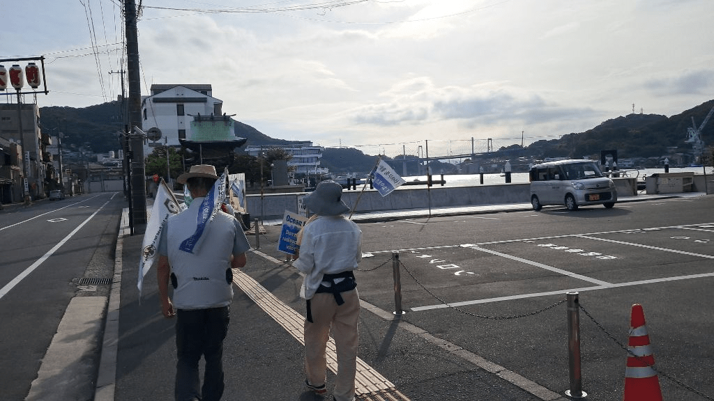 4. Citizens gathered in front of Onomichi Station at 7 in the morning.
