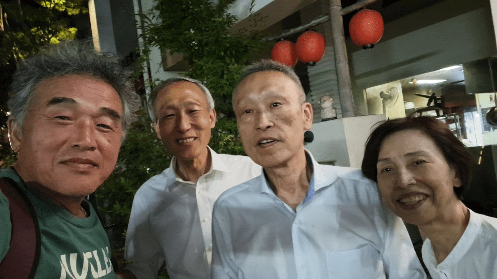 38. We talked a lot during the evening fellowship. Especially the story of having an audience with the Dalai Lama. And we also discussed our future plans. A commemorative photo with them. The t-shirt I am wearing is a gift from Ishioka-san who walked with me the day before.