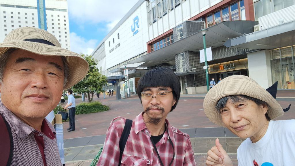 2. Early in the morning at Okayama Station, the two comrades who walked with me yesterday came out to see me off.