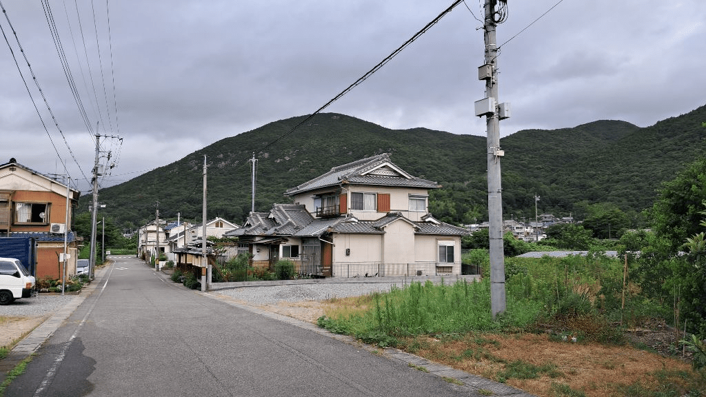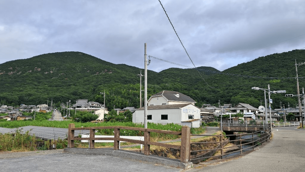 25. Zooming in, after crossing the bridge at the bottom left of the picture and walking along Route 250, soon only the road remains and the sidewalk disappears, leaving you with no choice but to walk to the village road on the left. The problem is that the road to the hill after entering the village is closed. It is probably because of the management of the quarry in the upper right corner of the photo.