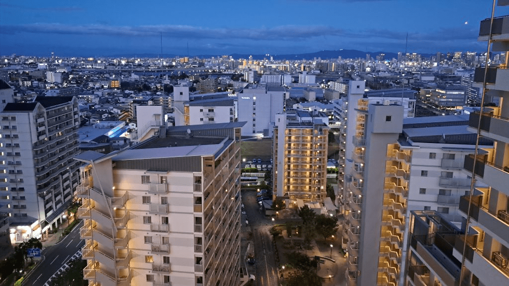 30. Panoramic view of Osaka city from his apartment. I can also see JR Osaka Station towards Umeda. I will march there tomorrow.