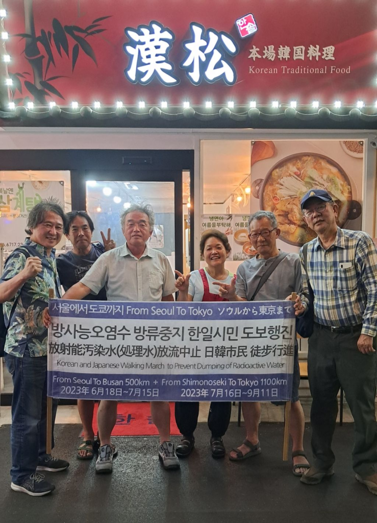 Hello. My name is Lee Wonyoung and I came from Seoul. As we walked, many citizens who had watched the march responded. They wave their hands towards us from inside the car. For example, elementary school students playing baseball in one town realized why a traveler from South Korea was walking. Children instinctively know what is true. After parting and walking for a while, one of them came after me on a bicycle and offered me food. I was moved. It is a march that children also support. At some point, the international community has gone out of order. Today, the strong nations that should lead the global village are completely unable to fulfill their original role. Humanity created the United Nations, but there is still more to come. When did the IAEA, the Japan Atomic Energy Agency, take the initiative? The United States and the United Nations are on the sidelines. We cannot leave the earth to them. From now on, the owner of the global village must stand up and correct it. The people should step in and take action. This Korean-Japanese citizen walking march is one of those steps. Kyoto is the bastion of Japanese conscience. I have high expectations for Kyoto citizens. Kyoto will play an important role in the process of full-fledged international solidarity of the people. Now is the time to show the way with action. We must gather our will through action and bring down the Japanese government. slogans for this walking march. Let’s shout together Don’t let polluted water flow! (Don’t flush contaminated water!) Do not throw away polluted water! (Don’t throw away contaminated water!) thank you.