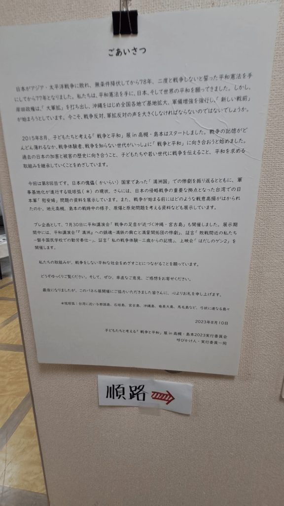 23. Attend an event held near Takatsuki Station. It is an exhibition that reminds us of the history of wars that Japan caused but not been included in textbooks.