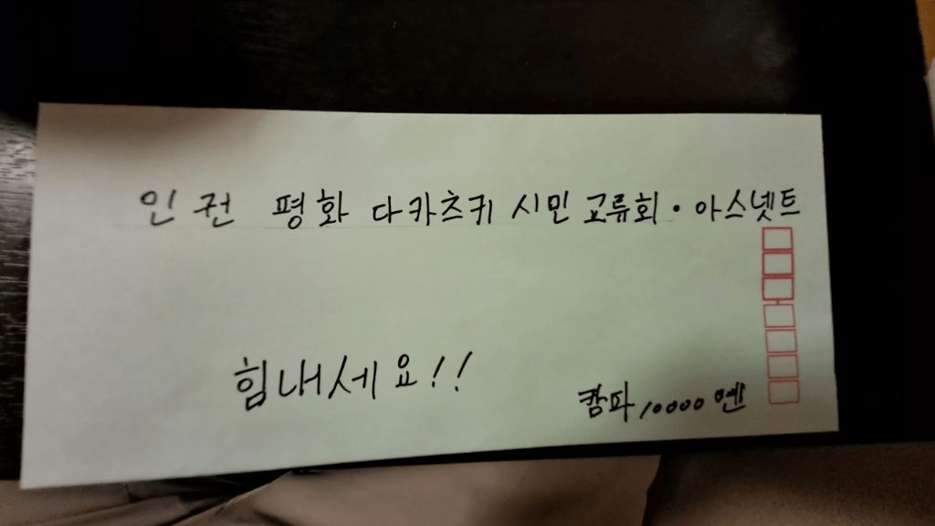 30. When the event started, Mr. Kihara, the organizer of the gathering, handed me an envelope containing donations from the people who gathered today.