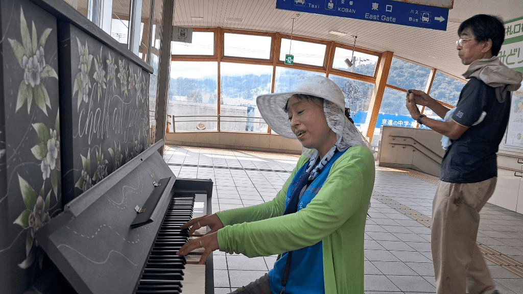 18. Minemito Atuko who sang for me while playing the piano installed in the station building during a break time at Notogawa Station. Amazing skill