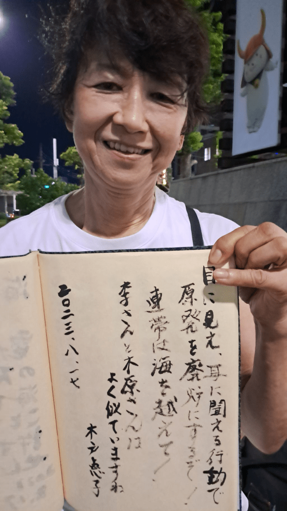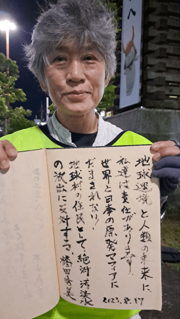31. Kido Keiko from Kihara’s team recorded publicity comments and repeatedly informed the public about the need to stop the release of contaminated water through loudspeakers during the march. The contents include an introduction to a marching group walking from Seoul to Tokyo. It’s touching.