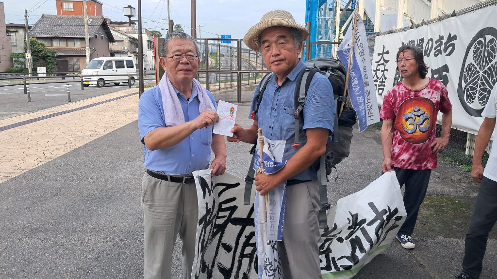 11. Prior to our departure in the afternoon, a reporter from Gifu Shimbun, a major local newspaper, came to cover the march. I introduced her to a message I sent to an event in Tokyo the other day.