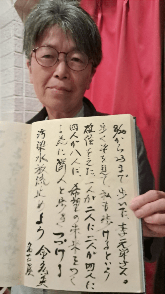 31. I also asked Mihagi Yamamoto, the leader of the anti-nuclear movement in the Nagoya area, who walked with us for the entire two days, for a message.