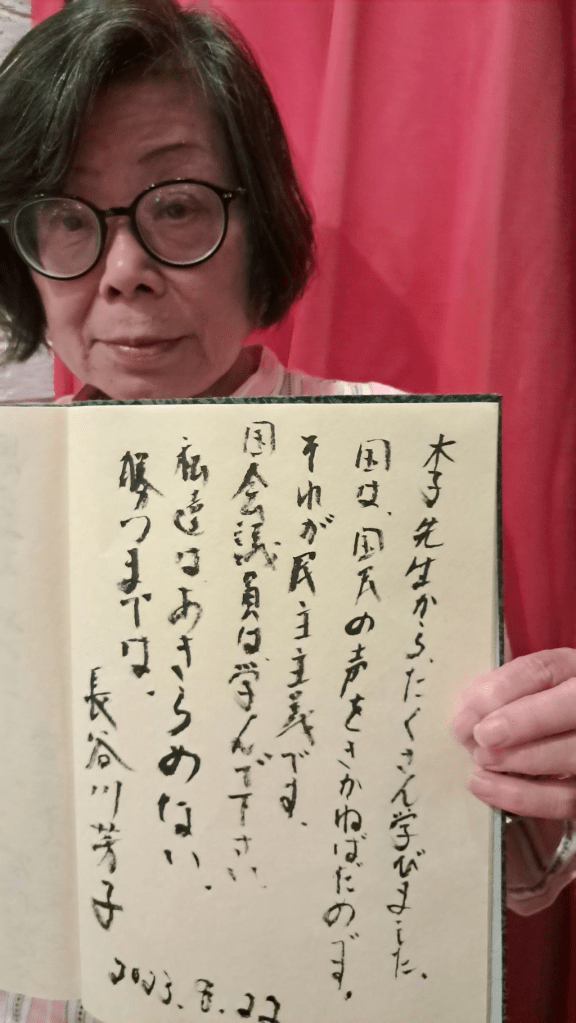 35. I also asked Keiko Ogata, co-representative of the Green Party of Japan, who I walked with this morning, a message.