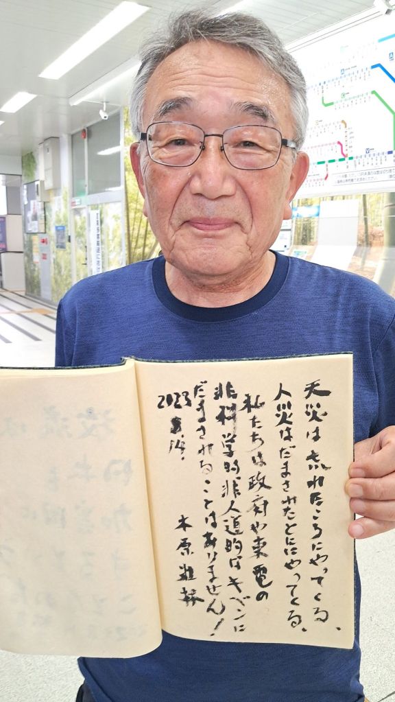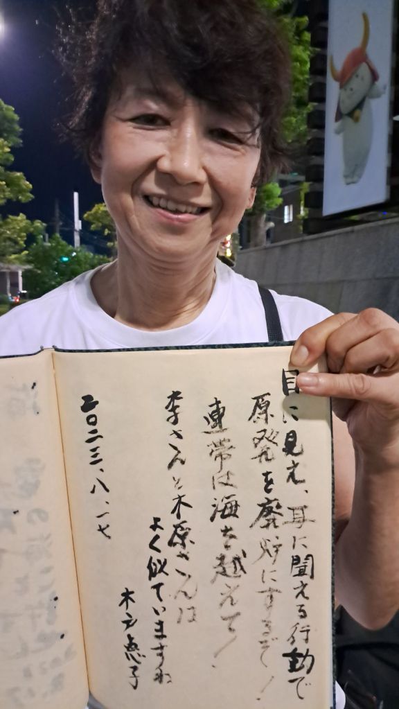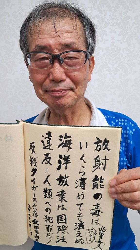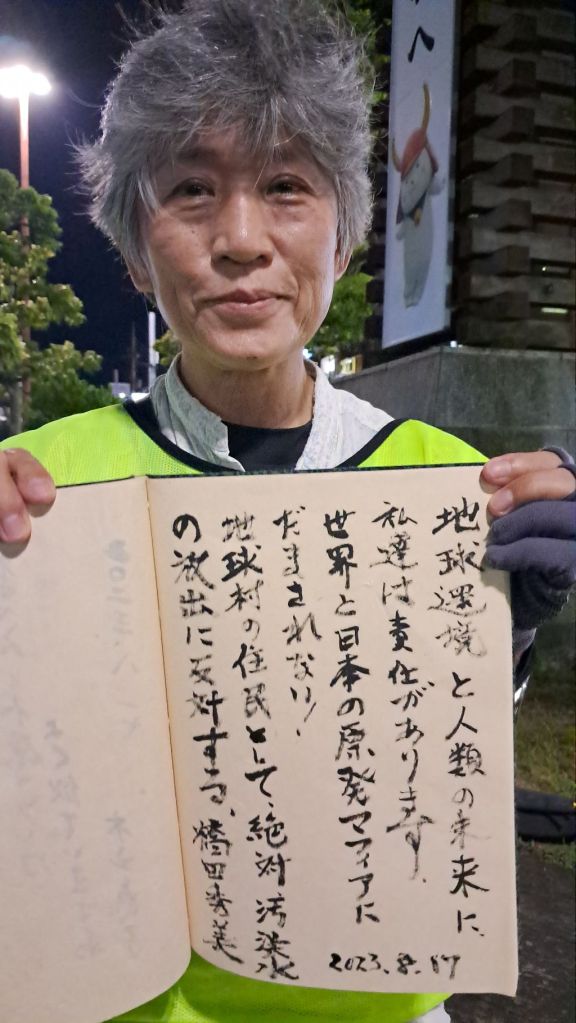 “I support and cheer the Korean-Japanese citizens’ walking march to block the ocean dumping of Fukushima’s radioactively contaminated water.