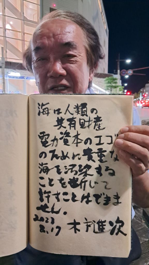 “방류는 일본을 가해국으로 만드는 것이다. 2023.8.14 아키요시 마사이치”