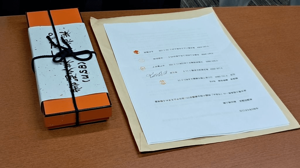 0. Today’s photo is of a USB containing messages from Korean and Japanese citizens being handed over to a secretariat official representing the Speaker of the Japanese National Assembly in the presence of an active member of the Japanese National Assembly.