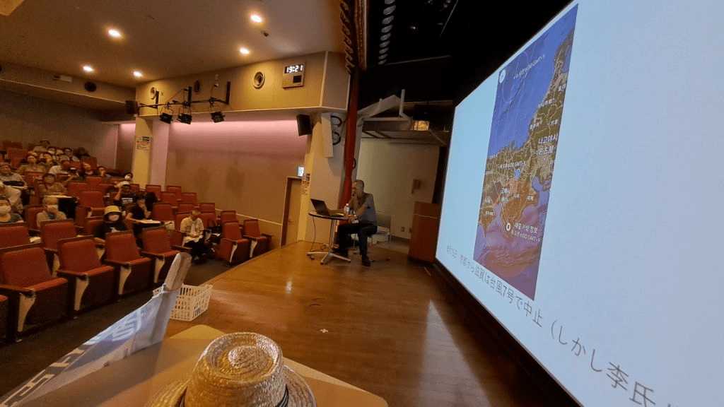 45. Comrade Jeong Young-hoon is introducing the Korean Citizen’s Declaration. Along with Nishida, Minhwa Kim also serves as interpreter.