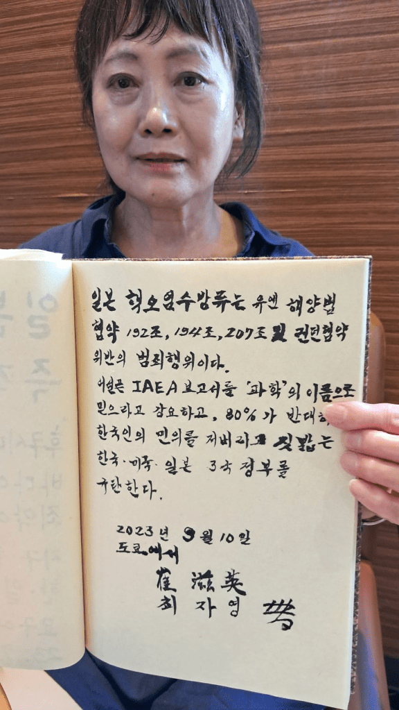 “There is only one ocean, the ocean is the source of life, let’s protect the ocean from radioactivity together Japanese and Korean people.