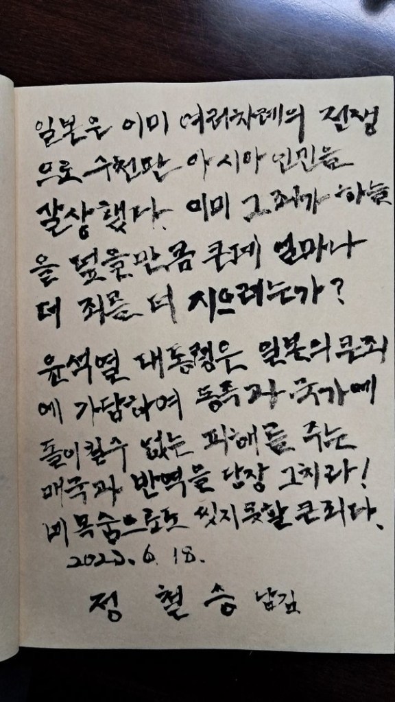 “There are all victims of atomic bombs in Korea and Japan. Both countries have a historical mission to create a world without nuclear weapons. However, politicians who are the errand boys of Korea and Japan are trying to follow the path of reaction. These limitations are overcome by the sovereign citizens of both countries. “It must be done. I hope that this walking pilgrimage can serve as an opportunity to enhance democracy and the rule of law between Korea and Japan. I have no doubt that the owners of the two countries can stop it.”