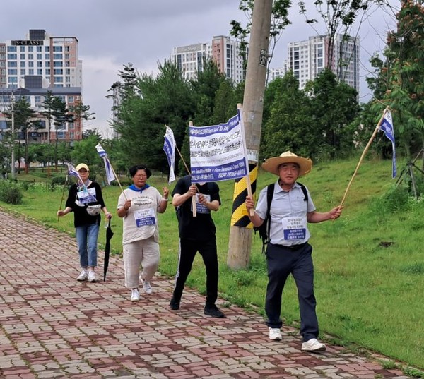As we were leaving the Seoul border, National Assembly member Kang Min-jeong came and walked with us to encourage us. She supported my movement to punish the Chosun Ilbo and also co-hosted a debate at the National Assembly. She is a valuable person who carries out upright legislative activities.