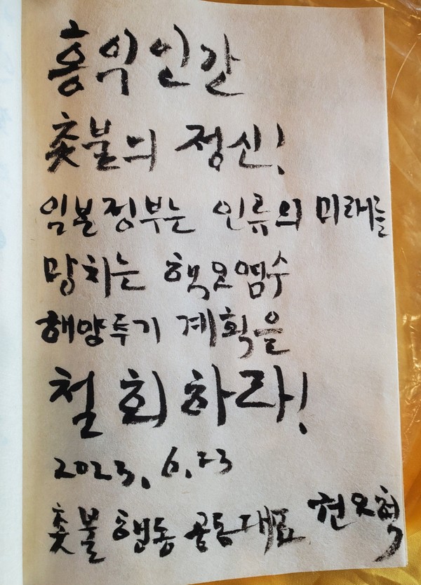 So, on June 18th, I stood in Gwanghwamun. And the following declaration was read: This declaration is read by attendees at the start of each march.