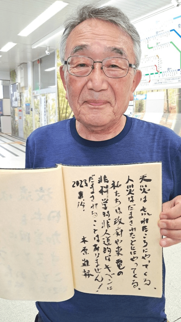 “Natural disasters comes when you forget. Manmade disasters comes when you are deceived. We are not deceived by the unscientific and inhumane sophistry of the government or Tokyo Electric Power Company.”