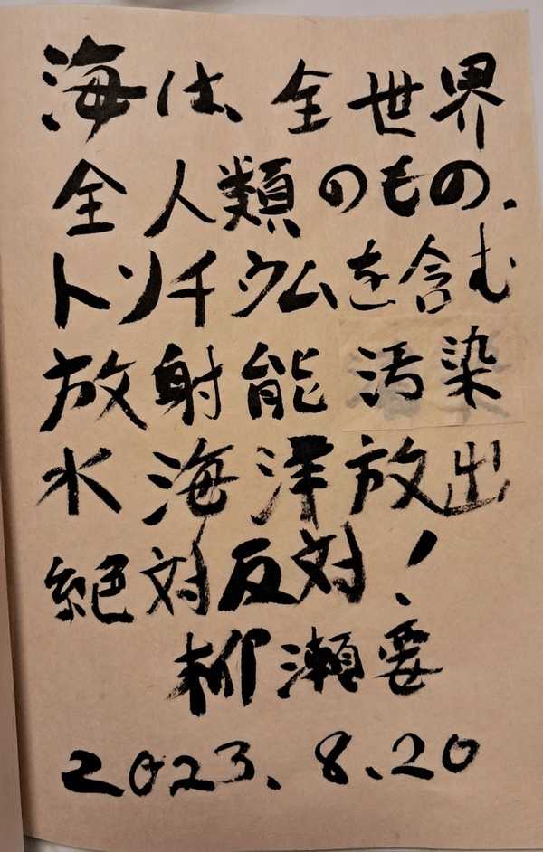 “The release of radioactive contaminated water destroys at once the trust that Japan has built up through its many contributions to the global community after World War II. The actions of one regime that destroys this trust that the Japanese people have built together for a long time, “The sovereign people should never tolerate this.”