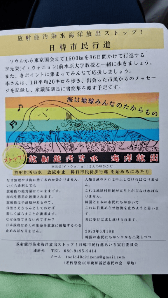 (The author, Lee Won-young, is a former professor at the University of Suwon, who led the Korea-Japan citizen walking march to stop radioactive contaminated water discharge for about three months from June to September 2023. This article and photos record its stories during the march.)