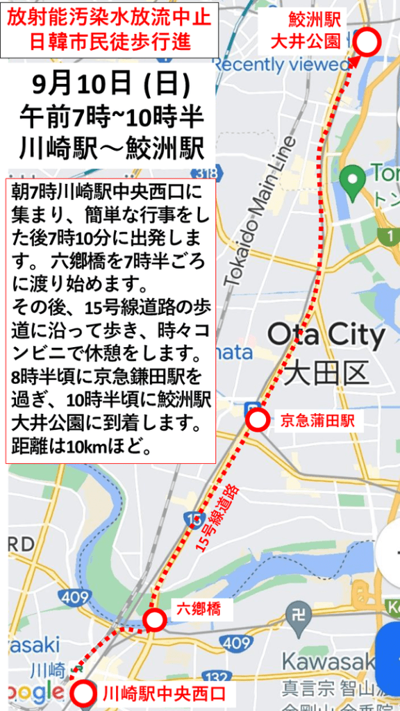 (The author, Wonyoung Lee, is a former professor at the University of Suwon, who led a Korean-Japan citizen walking march to stop the discharge of radioactive contaminated water for about three months from June to September 2023. This article and photos are a record of that story.)