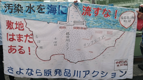 ‘Hosano osenseio umini nagasuna (「放射能汚染水を海に流すな!」)