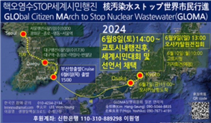 此次活动由韩国“停止核污染水排放世界公民游行执行委员会”(GLOMA KOREA)带领,韩国水原国立大学前教授李元荣等人为主要倡议者,他们联合日本福岛地区渔民代表、京都、大阪等地反对核污染水海洋排放的市民等共同参加了此次抗议活动。该活动是继去年针对日本政府下令核污水海洋排放后,该组织在日本举行了“福岛抗议大游行”以来,时隔一年再次举行的大型游行示威活动。